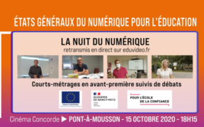 La Nuit du numérique éducatif. Diffusion de courts-métrages suivis de débats pour témoigner de la continuité de l'enseignement pendant et après le confinement.